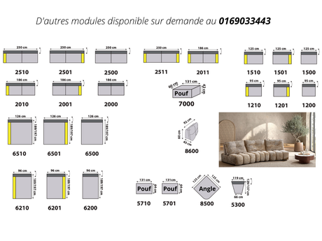 Les versions modulables permettent d’adapter la configuration selon vos envies : méridienne à droite ou à gauche, modules repositionnables, dossiers ajustables.