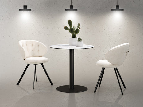 Assurez-vous que la hauteur des accoudoirs permet de glisser sous votre table lorsque vous vous rapprochez, créant ainsi une ergonomie parfaite pour prendre vos repas ou travailler à votre table en céramique.