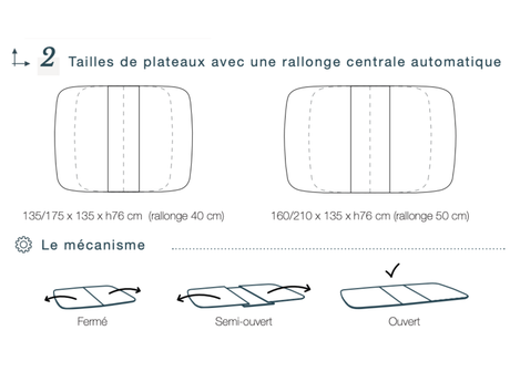 Thanks to their extendable mechanism , they easily go from a compact format to a large table to accommodate your guests.
