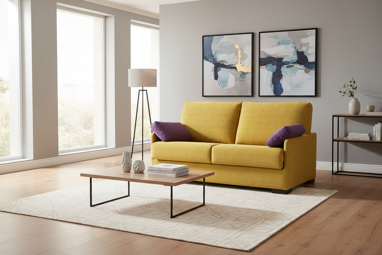 Bring a touch of dynamism and modernity to your interior with this 3-seater rapido convertible sofa in yellow microfibre . Ideal for small spaces, it combines warm design, practicality and optimal comfort.