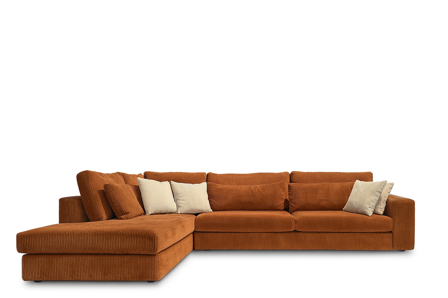 Bring warmth and modernity into your interior with the Riny corner sofa . Its bold and refined terracotta brick shade gives a unique personality to your living room while promoting a friendly atmosphere.