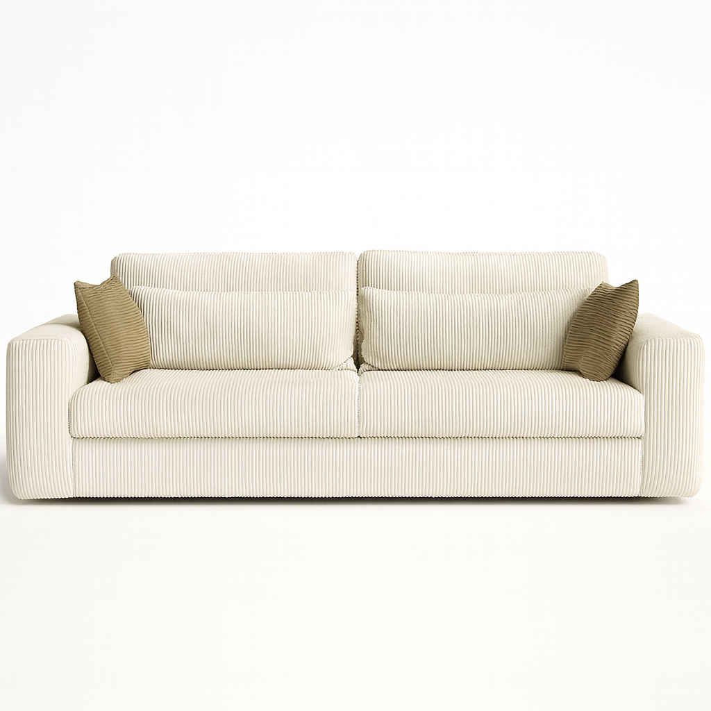 Canapé droit en velours côtelé beige "Lovy"