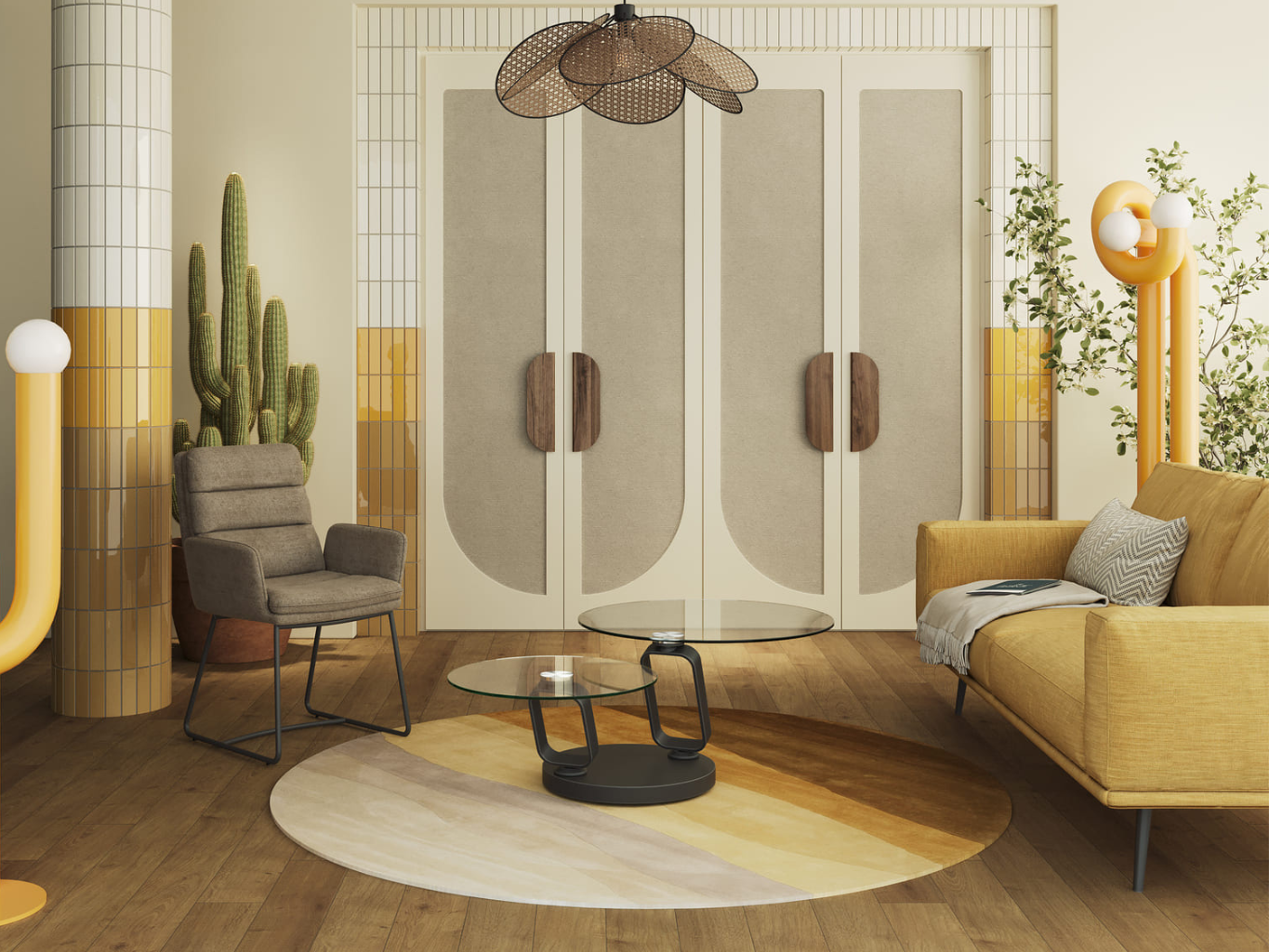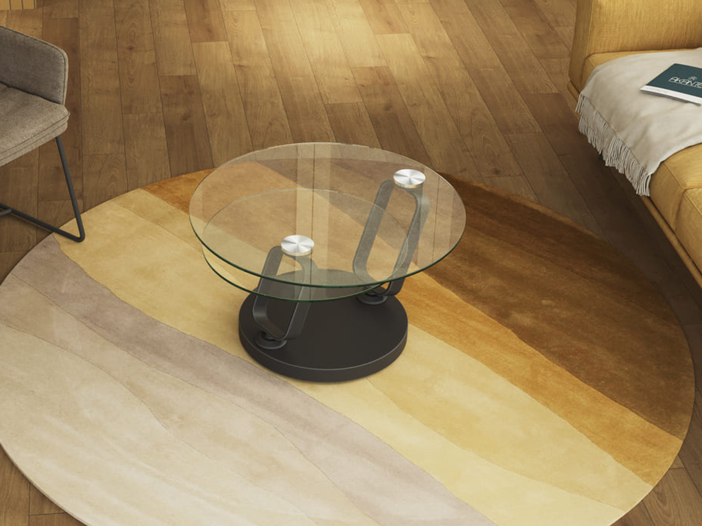 Add a touch of sophistication with the Adrien glass swivel coffee table , round design with black legs. Its modern and elegant style transforms your living room into a chic and functional space.