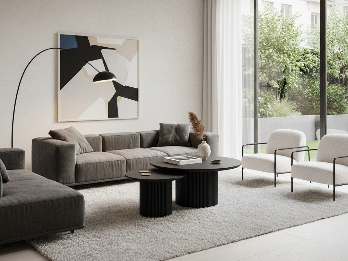 - Lignes épurées : une table basse ronde noir qui s’intègre dans tous les styles d’intérieur.