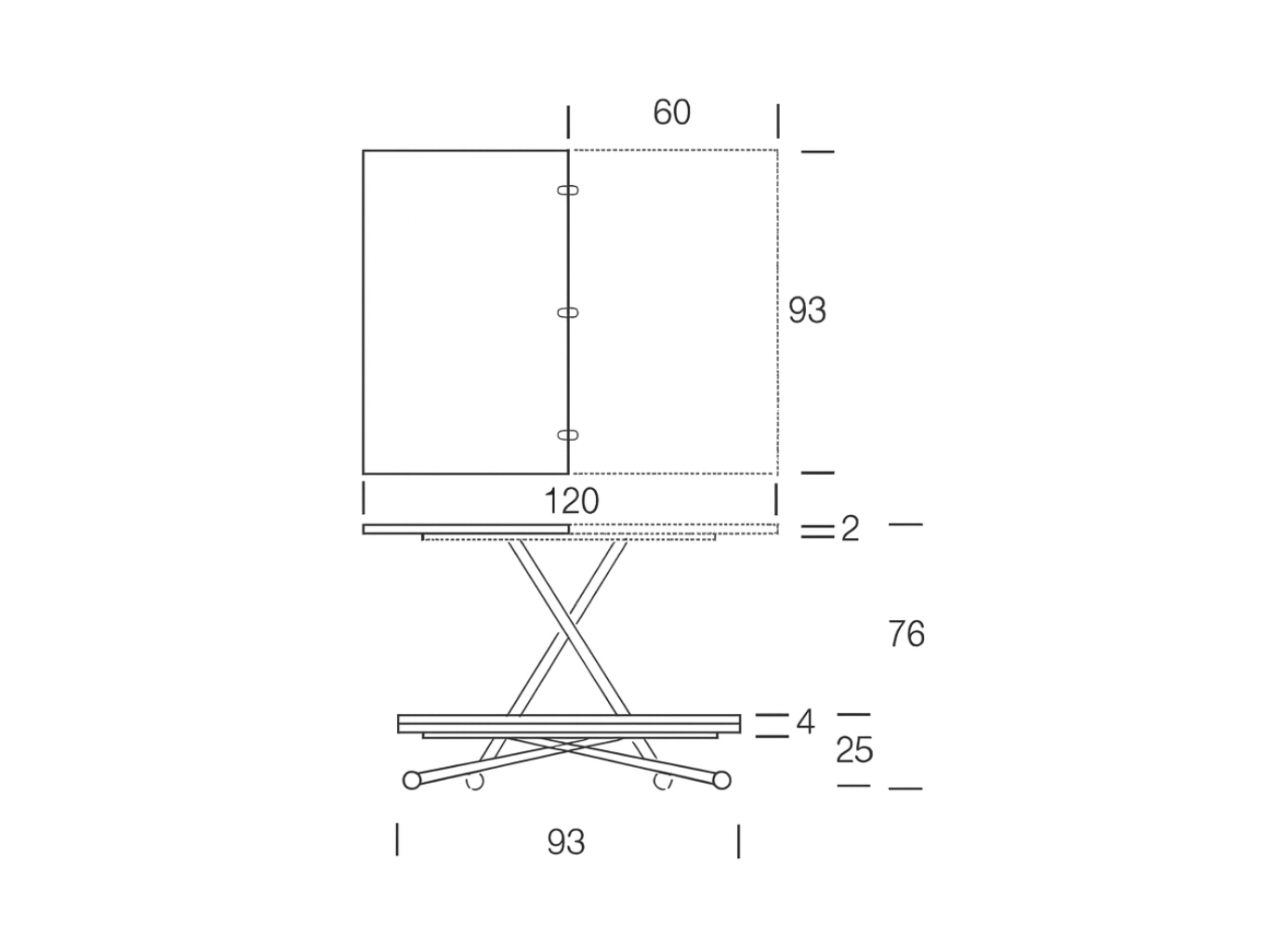 Thanks to its 10-year guaranteed gas lift mechanism , this coffee table can be raised , going from a height of 25 cm to 76 cm in a simple gesture. In addition, its top is extendable , widening from 60 cm to 120 cm thanks to discreet extensions located at the end of the table. This flexibility allows you to adapt it to your needs, whether for daily use or for entertaining your guests.