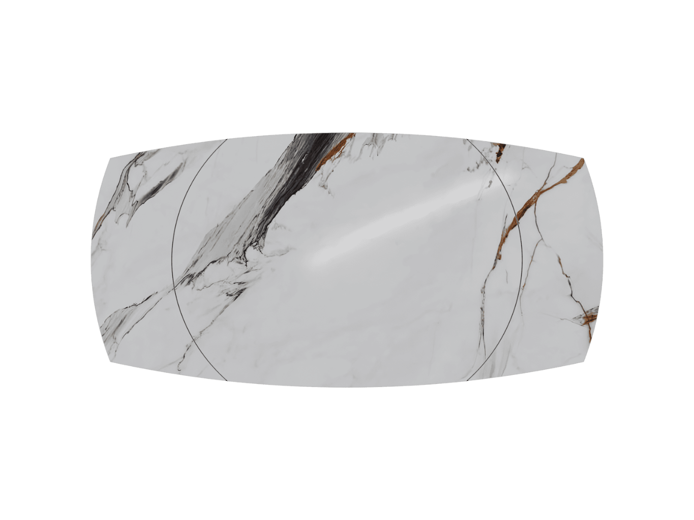 The ceramic top , glued to tempered glass , offers a resistant and aesthetic surface. Its marble effect adds a luxurious touch to your decoration while ensuring high resistance to scratches, heat and stains. The tempered glass guarantees optimal stability , thus reinforcing the robustness of the Kheo table.