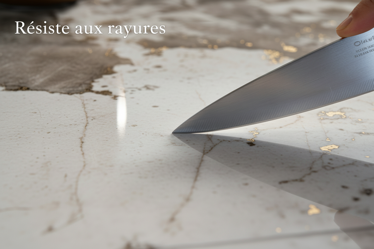 Oui, sa céramique haute densité résiste aux rayures, aux taches et à la chaleur, garantissant une longévité exceptionnelle.