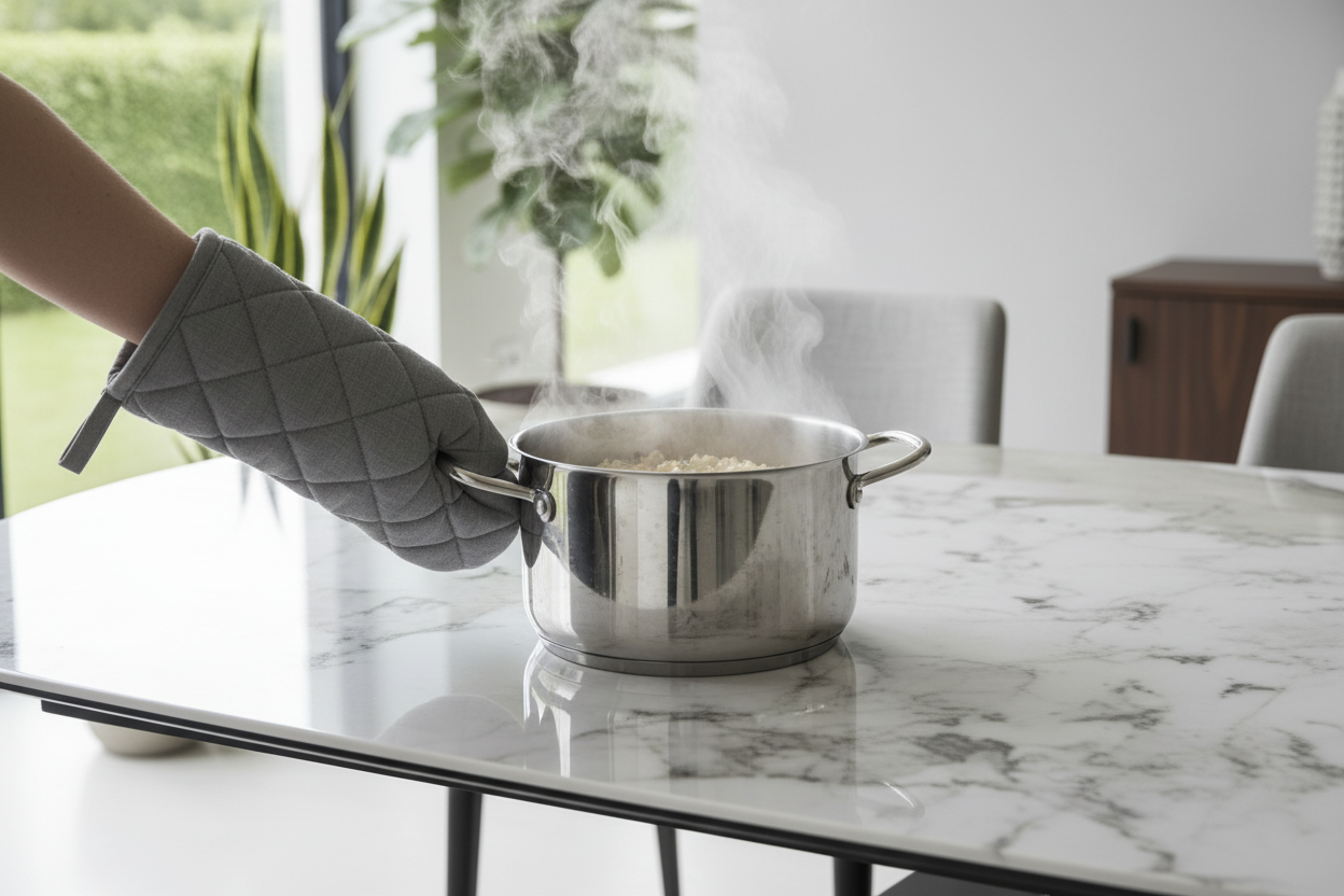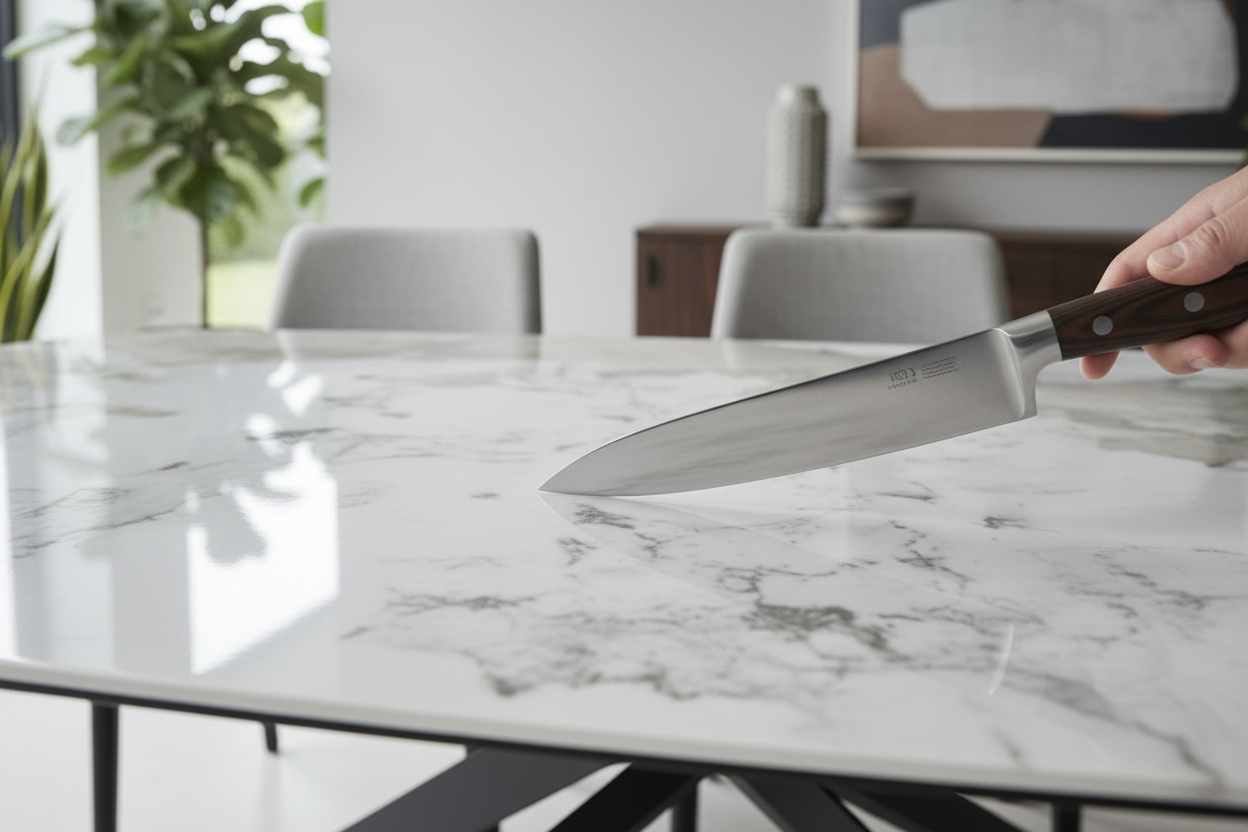 A marble-effect ceramic top: refinement and durability