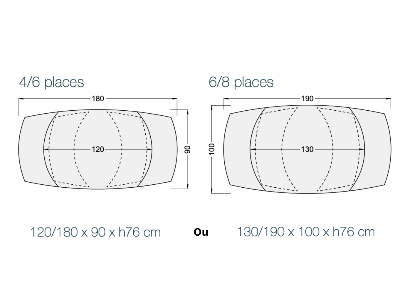 | Plateau : | 3mm light grey ceramic glued to 8mm tempered glass | |