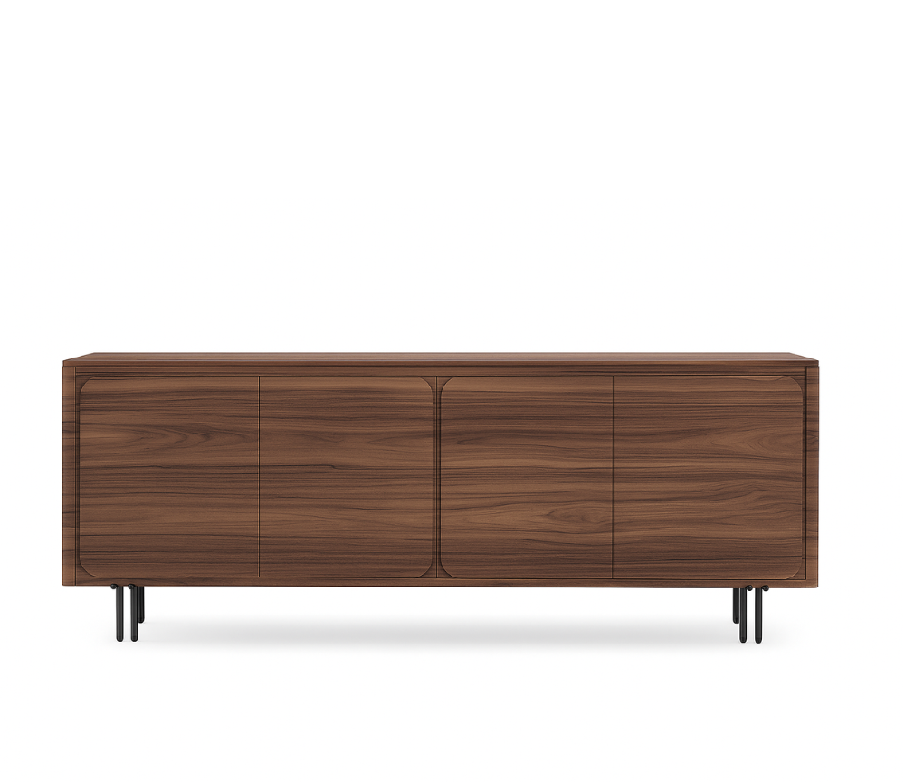 Le buffet Fiory 220 cm mêle bois noyer chaleureux et piètement métal noir pour une présence sobre et architecturale. Un meuble bas spacieux qui organise l’espace avec élégance, tout en soulignant le caractère de la salle à manger.