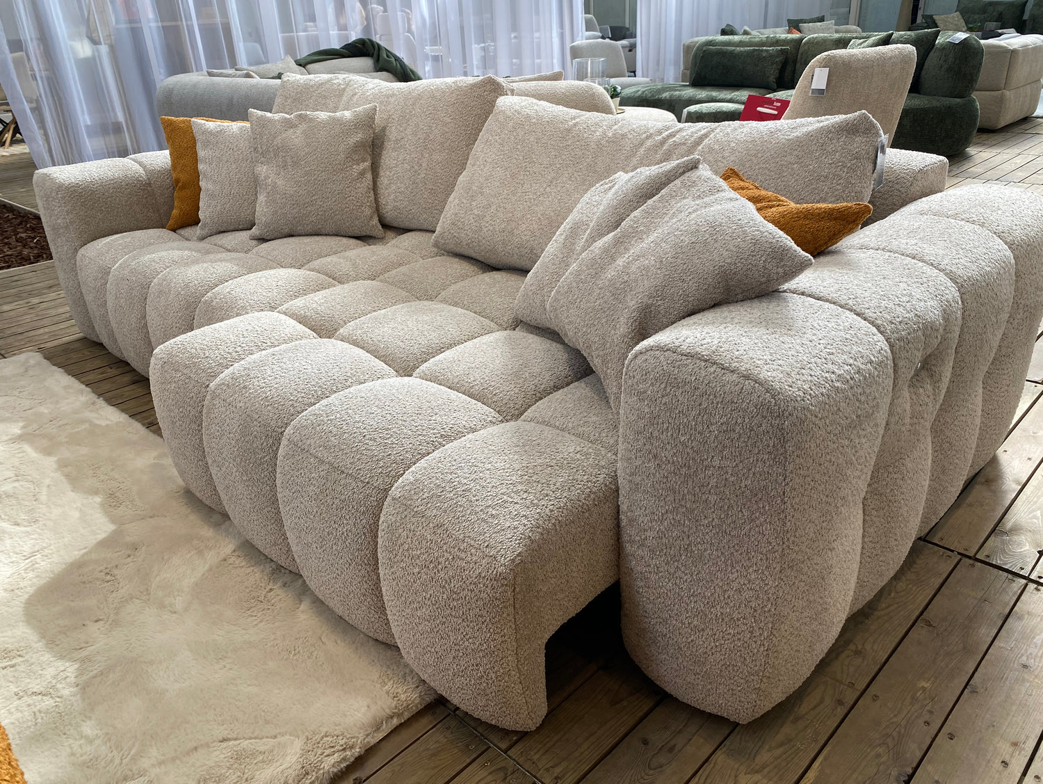 - Tissu bouclette anti-tache : esthétique raffinée et entretien simplifié.