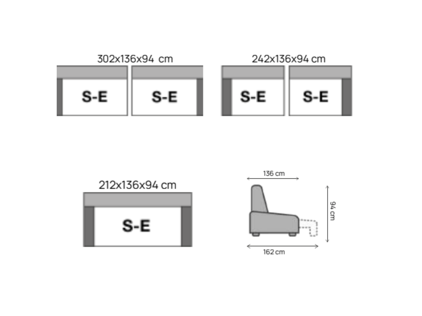 - Longueur : 242 cm (302 cm ou 212 cm)