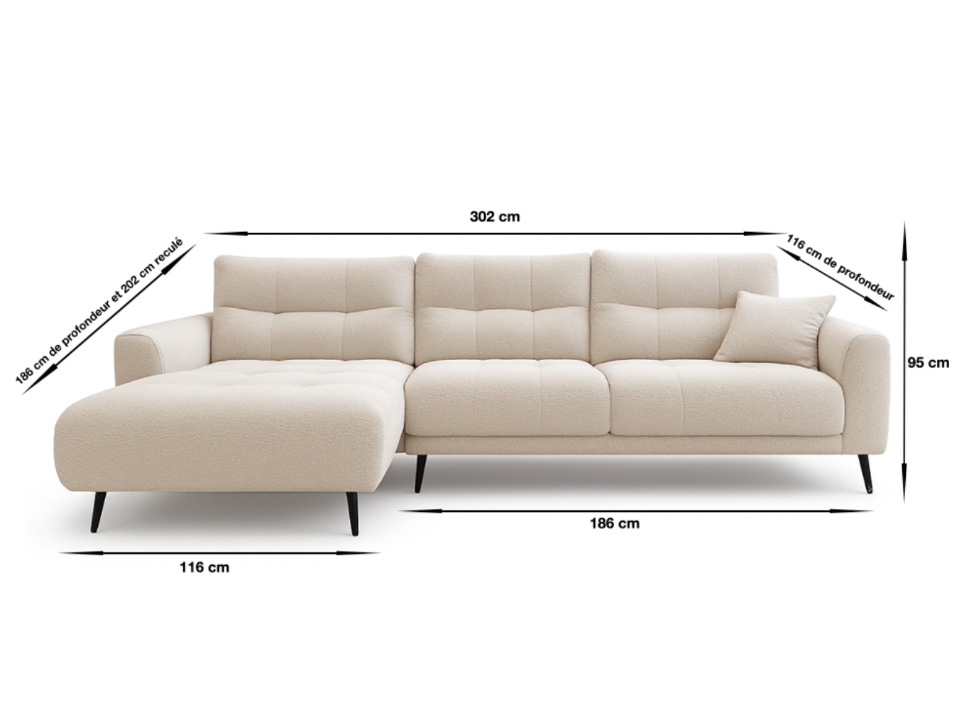 Associez votre canapé d’angle blanc à une collection scandinave pour un style épuré et lumineux, ou jouez le contraste avec des accessoires dorés pour un rendu contemporain chic.
