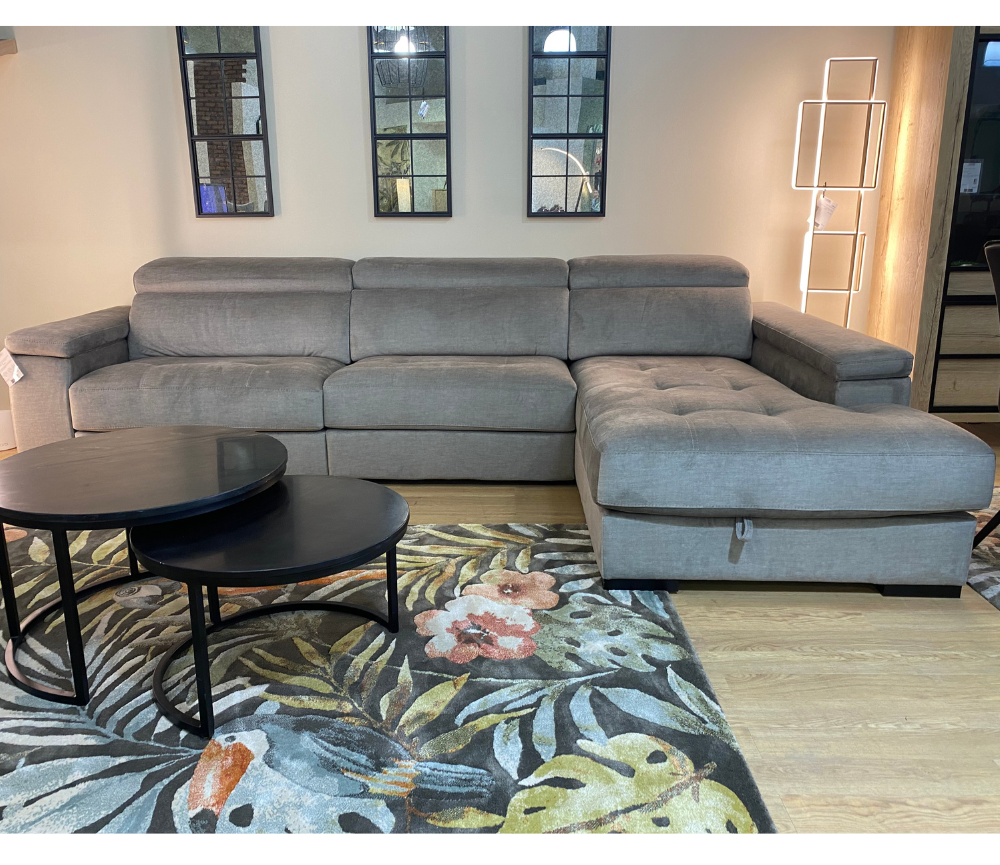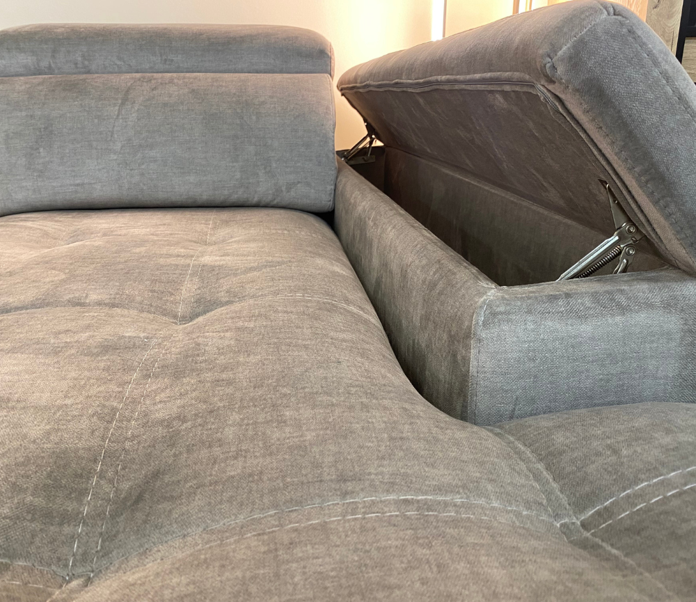 Le design malin de ce canapé d’angle optimise l’espace et crée une atmosphère accueillante. Grâce à ses assises coulissantes, ajustez la profondeur pour profiter d’un confort exceptionnel. Son coffre de rangement intégré, discret et spacieux, vous permet de garder votre salon ordonné sans compromis sur l’élégance.