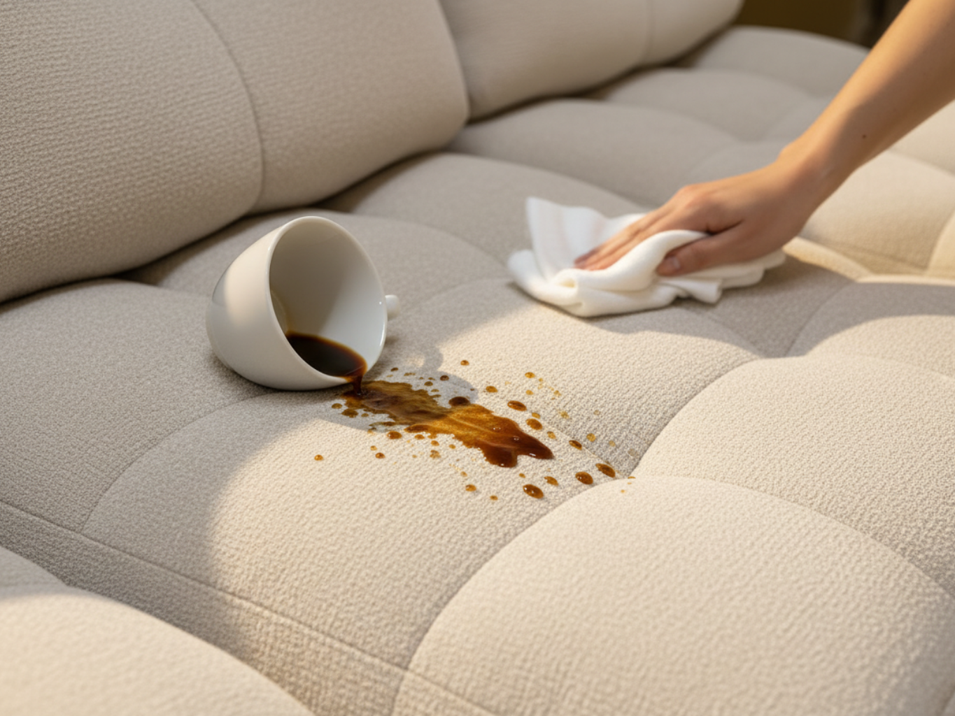Revêtu d’un tissu beige traité anti-taches, Cassia conjugue esthétique et praticité. Un entretien simple (eau + savon) suffit à préserver son éclat, même dans un quotidien animé.