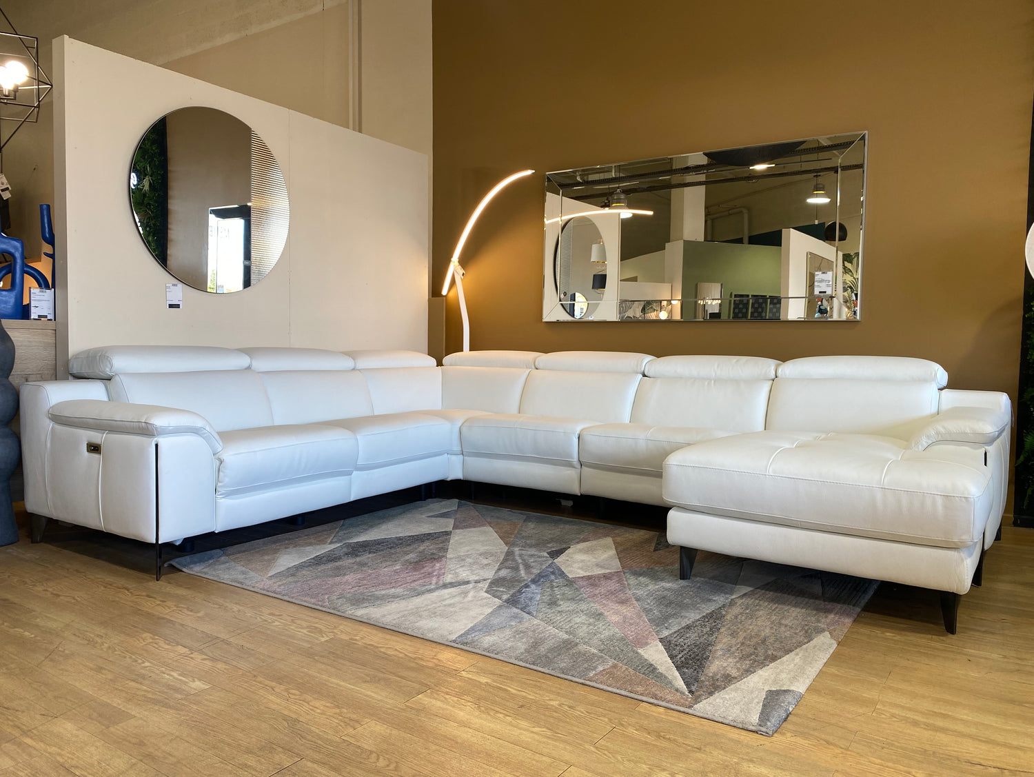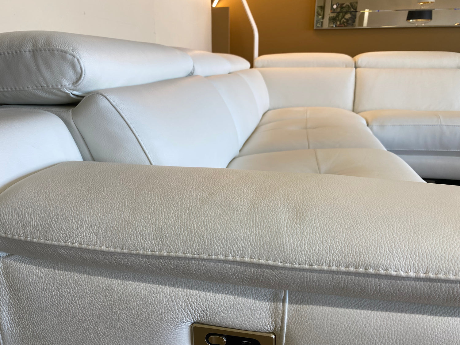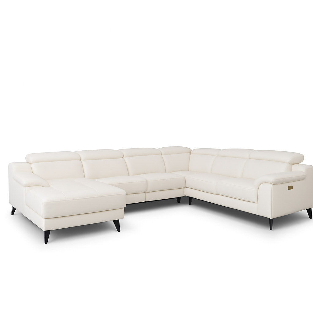 Canapé panoramique en cuir blanc avec relax électriques – Ariana