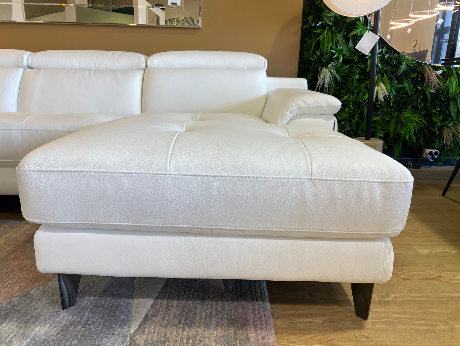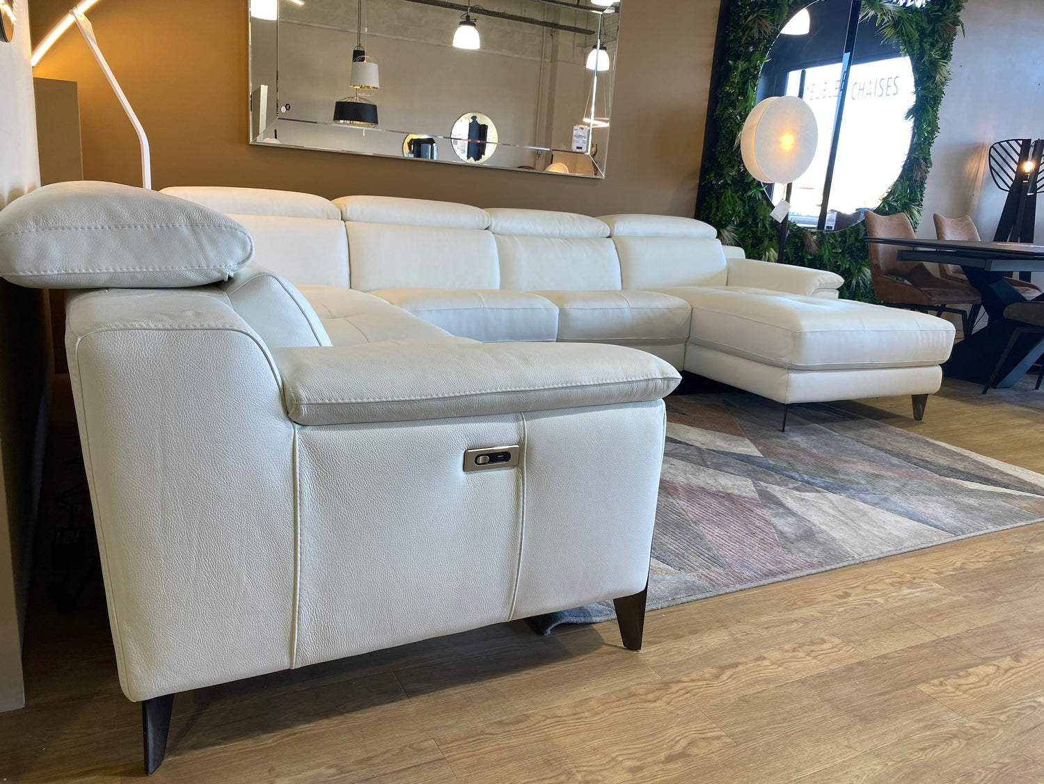 Alliez élégance, technologie et confort absolu avec le canapé panoramique en cuir blanc Ariana. Ce modèle d’angle relax électrique est conçu pour les intérieurs raffinés qui exigent le meilleur : design épuré, assise moelleuse, et finitions haut de gamme signées Souffle d’Intérieur.