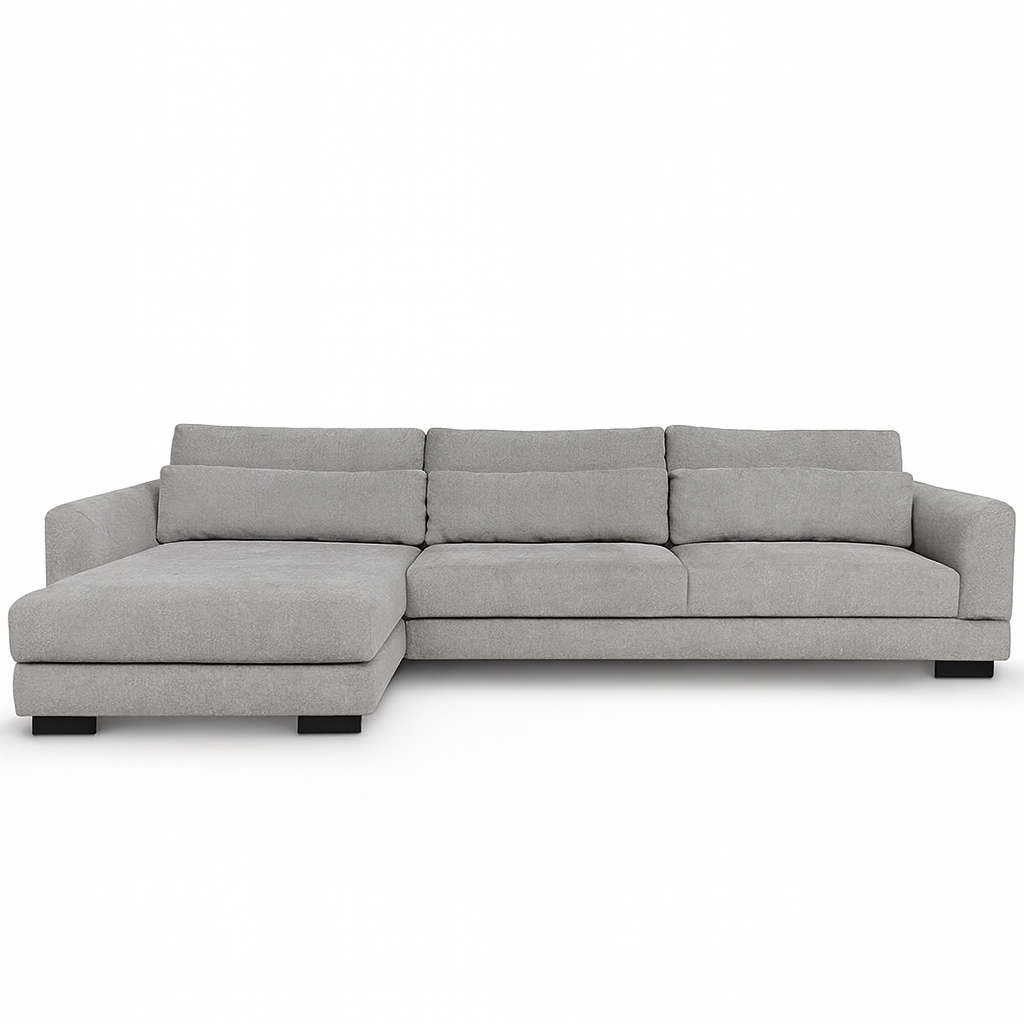 Le canapé d’angle Romane transforme votre salon en un espace à la fois chaleureux et sophistiqué. Sa silhouette contemporaine, soulignée par un tissu gris intemporel, s’intègre harmonieusement dans tous les styles d’intérieur, du plus classique au plus moderne.