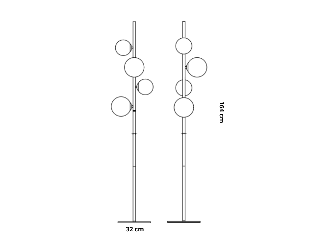 Son pied en métal noir mat offre une stabilité parfaite et un rendu visuel sobre et chic. Les globes en verre soufflé fumé captent la lumière, la filtrent et la diffusent sans éblouir, pour une sensation visuelle et émotionnelle immédiate.