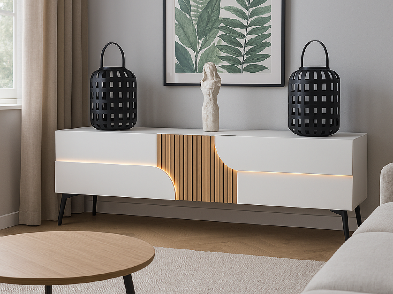 Meuble TV blanc et bois “Marquis” – Design épuré & chaleur naturelle