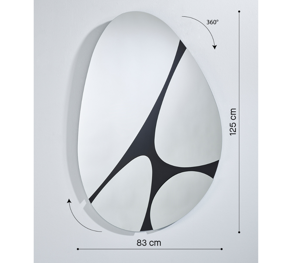 - Matériaux : verre trempé laqué noir + éléments miroir en relief