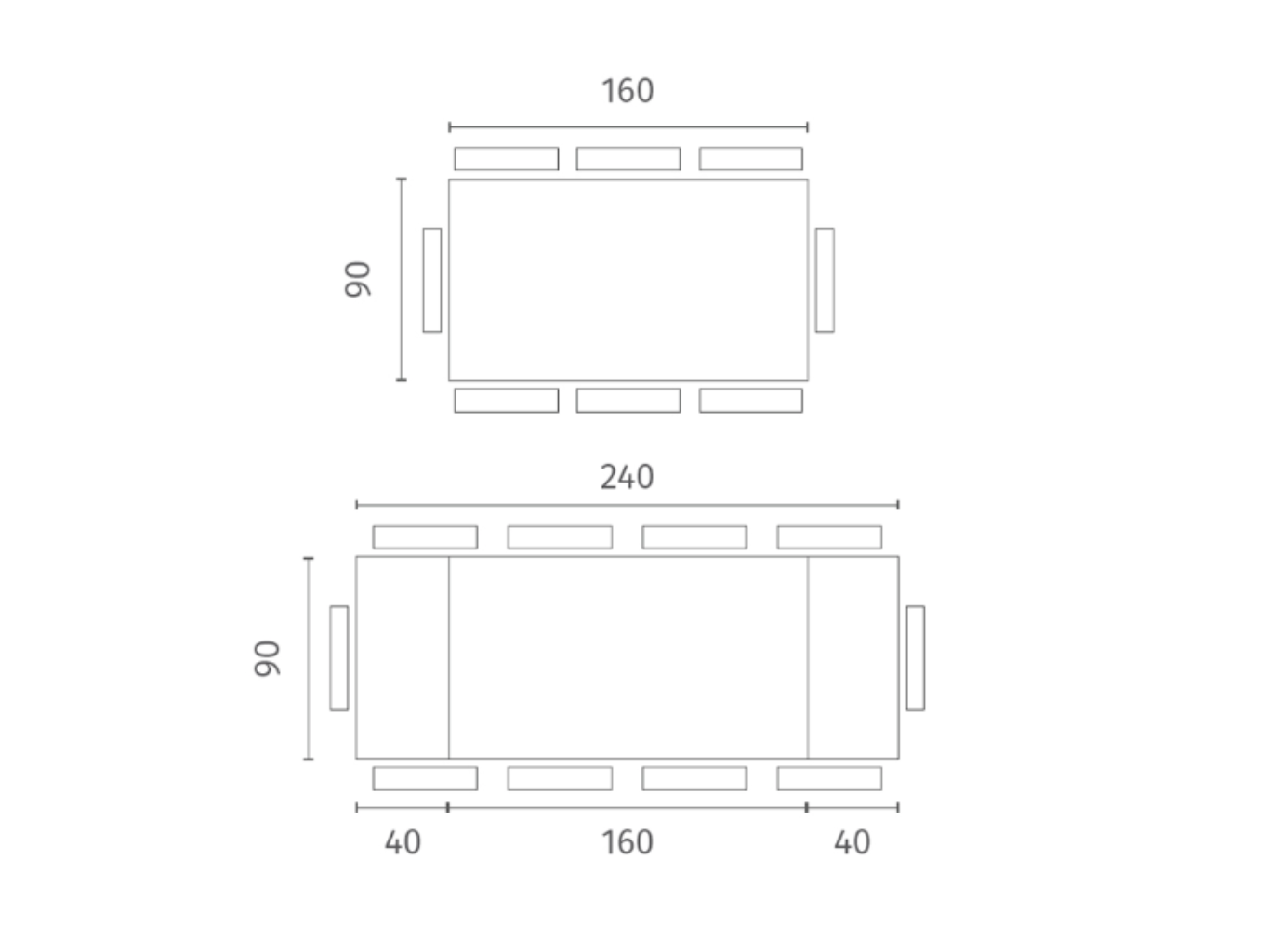 - Longueur : 160 cm (jusqu’à 240 cm avec 2 rallonges de 40 cm)