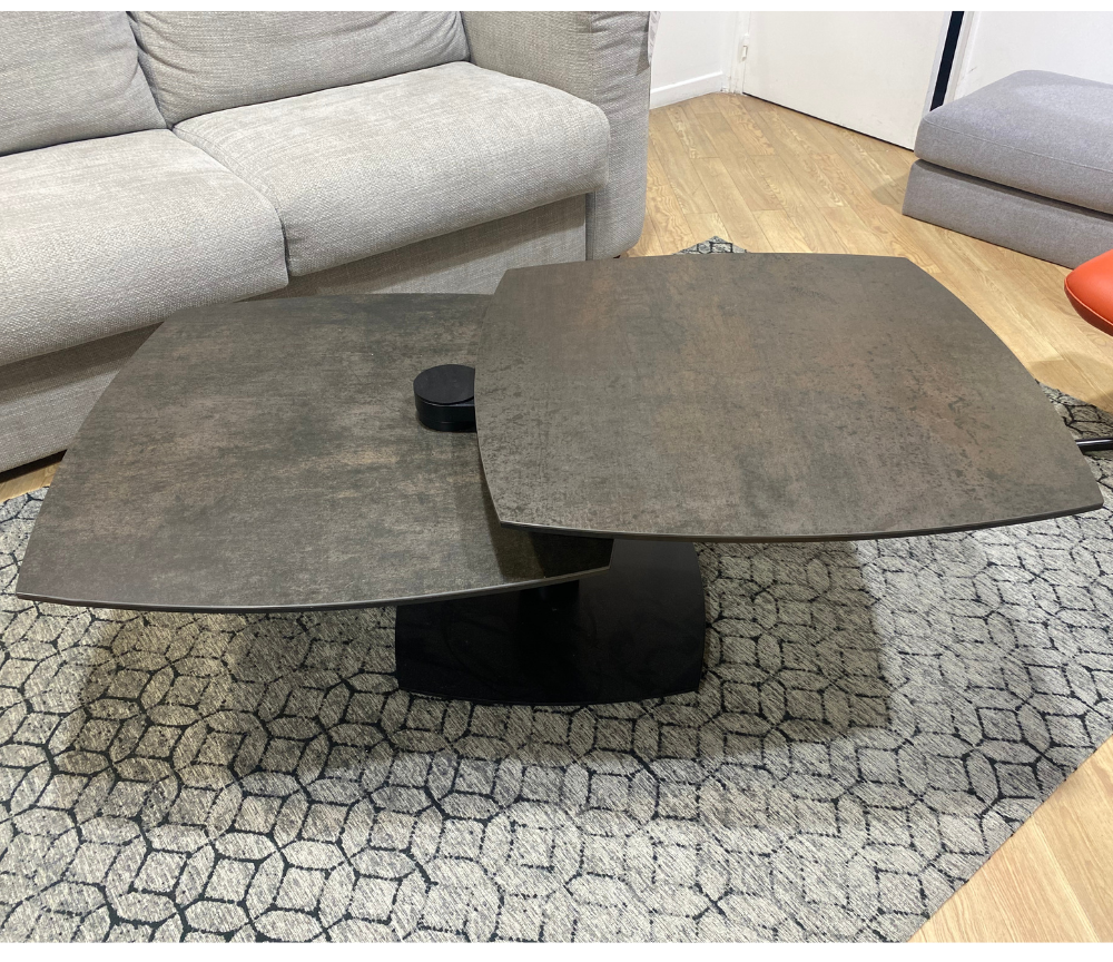 Alliez élégance italienne et ingéniosité moderne avec la table basse Theresa. Son plateau en céramique haut de gamme se décline en effet rouille, marbre blanc, gris pierre ou bois naturel pour s’harmoniser à toutes les ambiances. Avec ses plateaux pivotants modulables, elle transforme chaque instant de votre salon en un moment de raffinement pratique.
