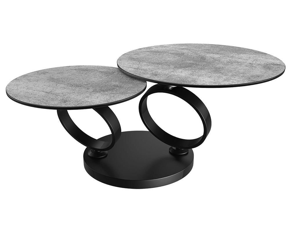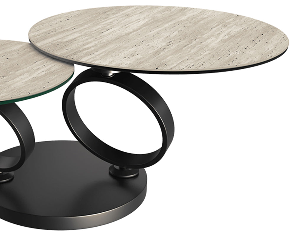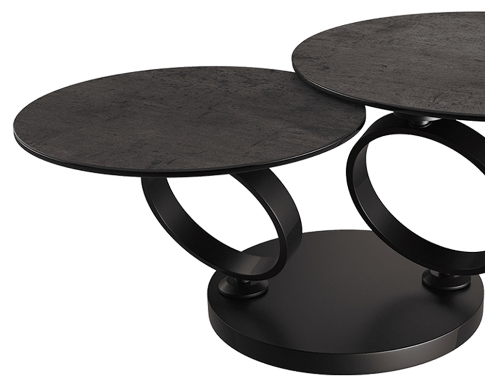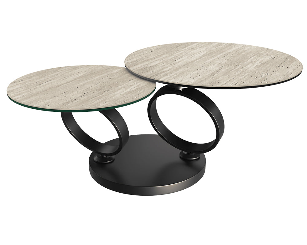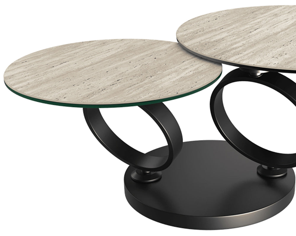 Ses deux plateaux ronds pivotants offrent une surface modulable selon vos besoins : installez un apéritif entre amis ou gardez votre tasse de café à portée de main… toujours avec style.