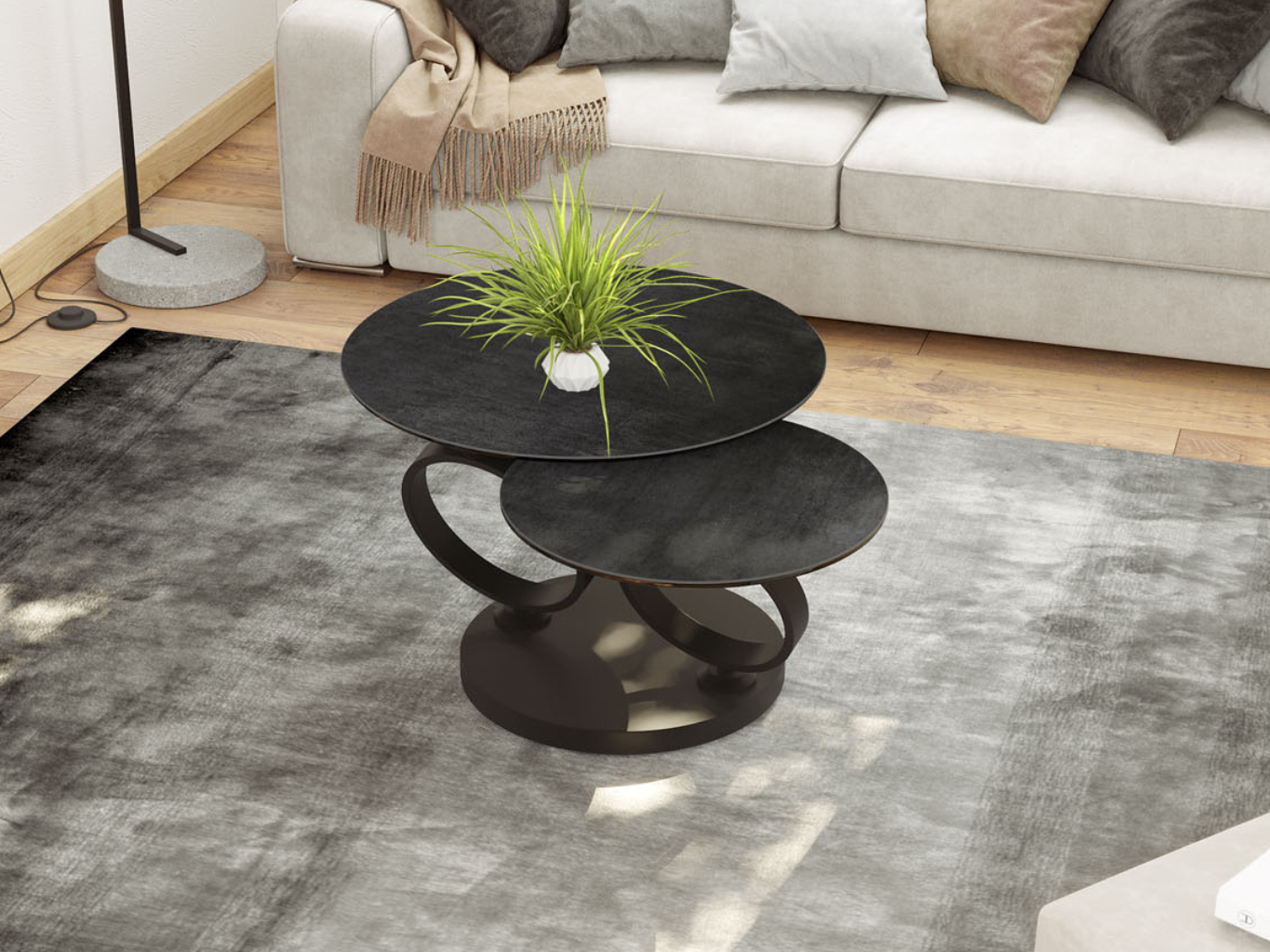 La table basse Rosy réunit tout ce que recherchent les amateurs de design : céramique haut de gamme, double plateau pivotant et une forme ronde modulable pensée pour sublimer votre espace de vie. Disponible en finitions raffinées – noir, taupe, acier, argent, travertin, marbre clair ou effet bois clair – elle s’intègre naturellement dans un salon moderne, contemporain ou minimaliste.