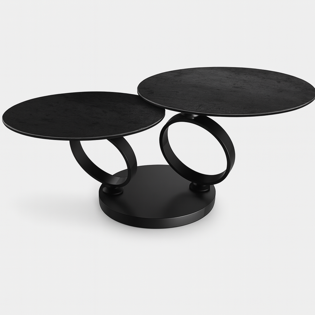 Ses deux plateaux ronds pivotants offrent une surface modulable selon vos besoins : installez un apéritif entre amis ou gardez votre tasse de café à portée de main… toujours avec style.