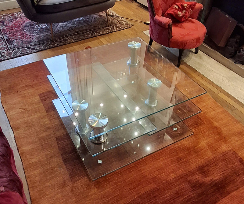Table basse pivotante en verre trempé – Design modulable 3 plateaux