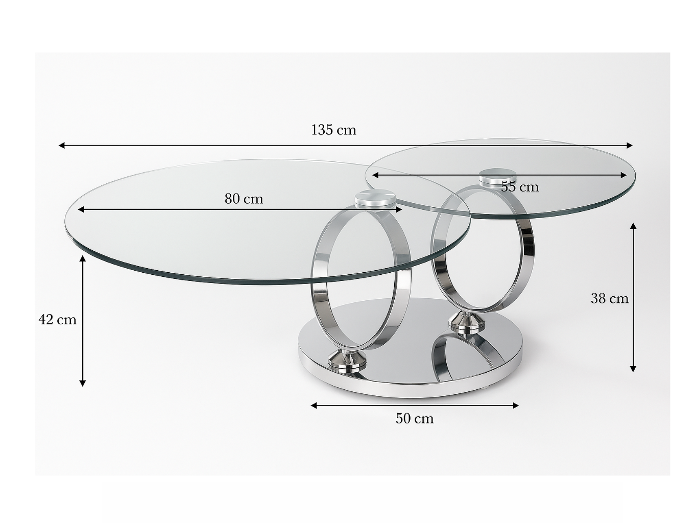 Alliant transparence, brillance et design contemporain, la table basse Olivia illumine votre salon. Son plateau double pivotant en verre trempé et sa base en chrome poli créent un jeu de lumière saisissant et une esthétique raffinée.