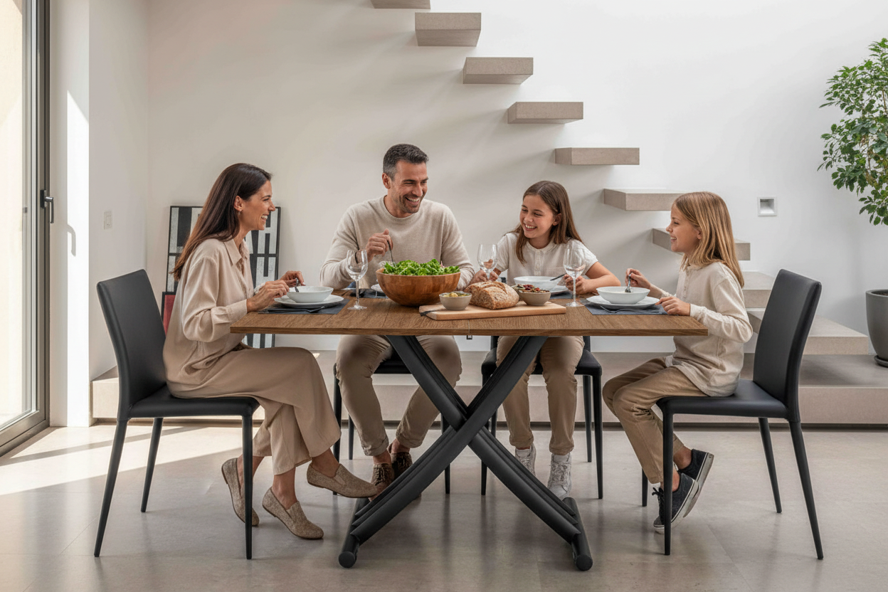 Grâce à son système de vérin à gaz garanti 10 ans, la table Fenix s’ajuste avec fluidité, passant d’une table basse discrète à une table de repas fonctionnelle. Elle s’adapte naturellement à vos moments de vie : pause café, apéritif ou repas improvisé.