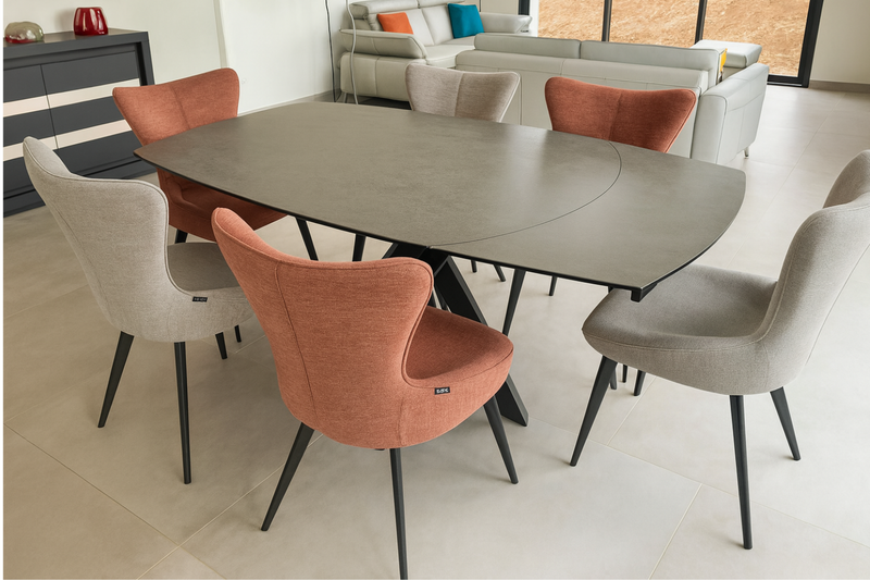 Quand le design rencontre la fonctionnalité. La table Kheops séduit par son plateau tournant extensible en céramique effet marbre, une pièce signée Akante qui allie raffinement et intelligence d’usage. Son piétement noir mat sculptural et sa forme légèrement arrondie font d’elle le centre d’attention de toute salle à manger moderne.