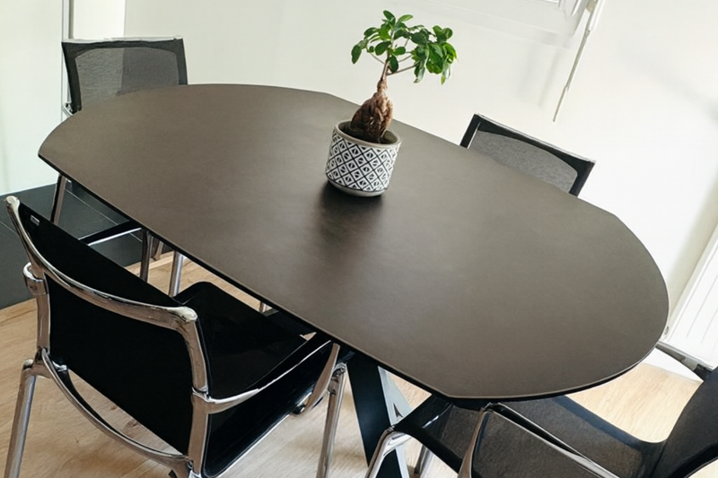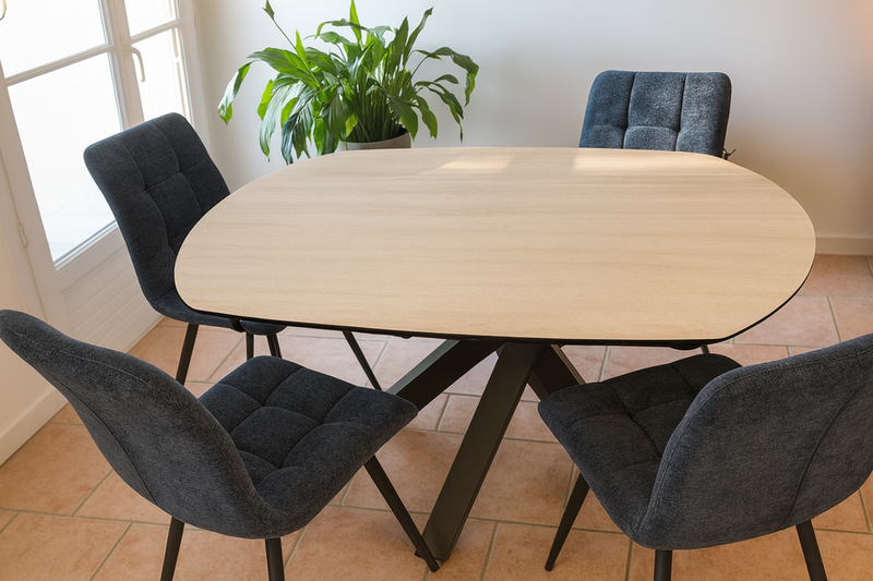 - ✔️ Design ovale : circulation fluide autour de la table