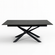 Le plateau en céramique de 4 mm est collé sur une base en verre trempé de 8 mm, pour une résistance maximale sans compromis sur l’esthétique. Il supporte les températures extrêmes, les rayures, les chocs thermiques et les taches. Les pieds en métal noir mat, disposés en croix centrale, offrent un design affirmé tout en garantissant une stabilité optimale.