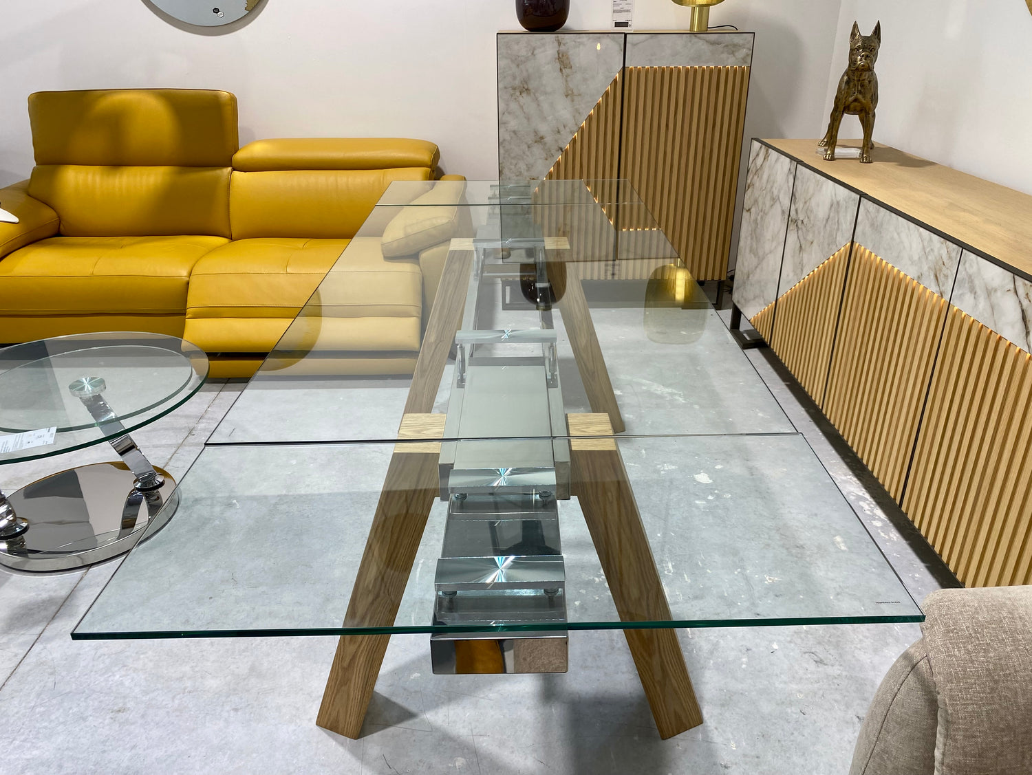 Table en verre et bois extensible "Wilson" – Alliance du design et de la chaleur naturelle